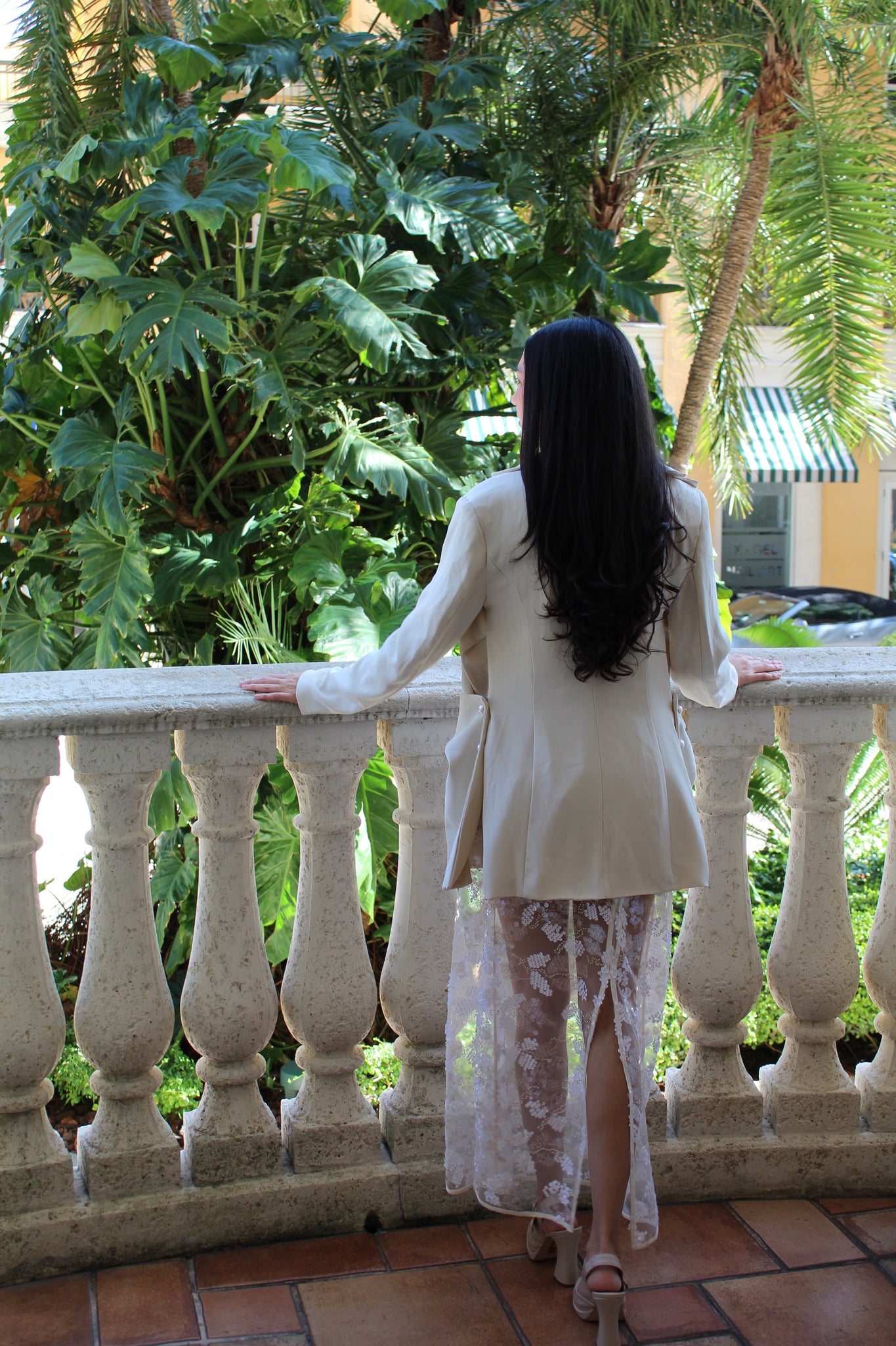 Floral Sequin Mesh Maxi Skirt. Mesh maxi skirt adorned with floral sequin embroidery. Built in mini skirt lining for added coverage. Side zipper closure. Lightweight sheer overlay for an ethereal look. Model is wearing size S.