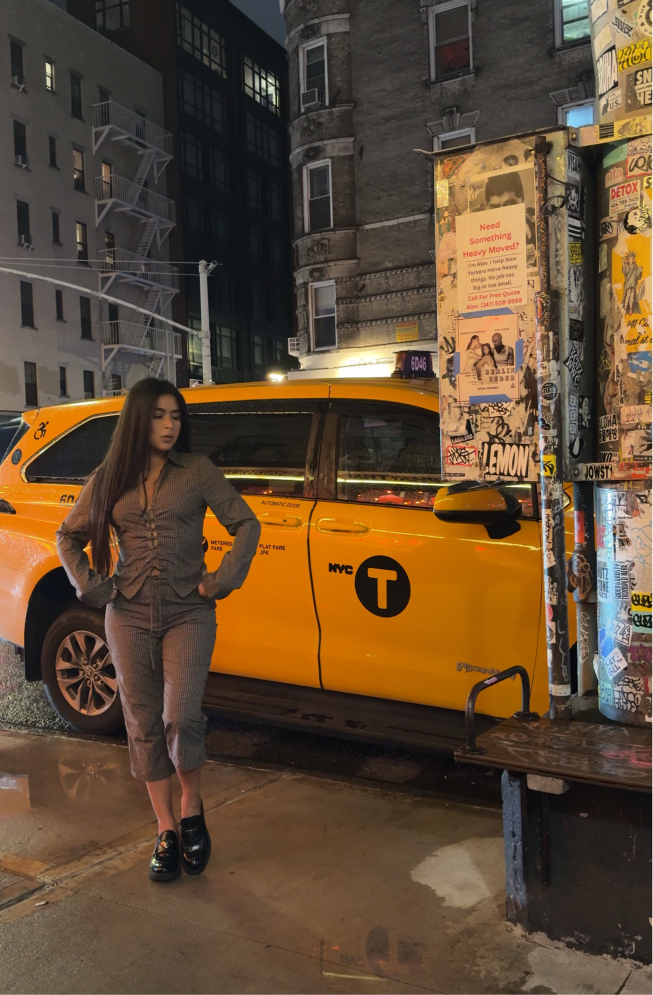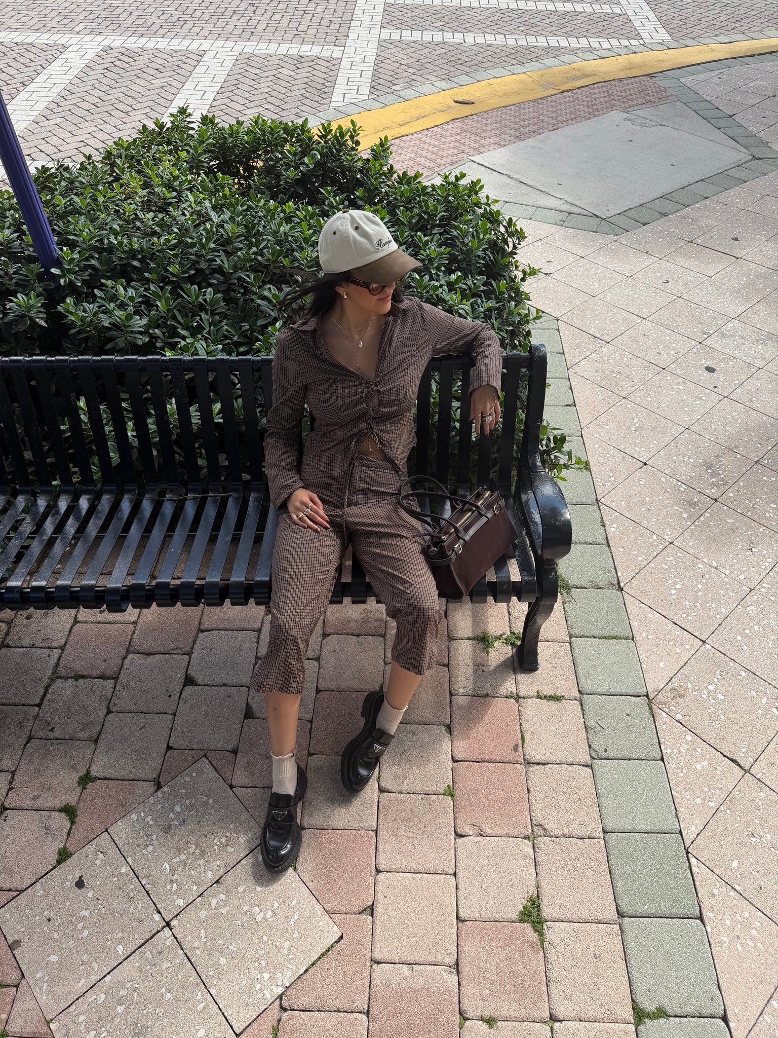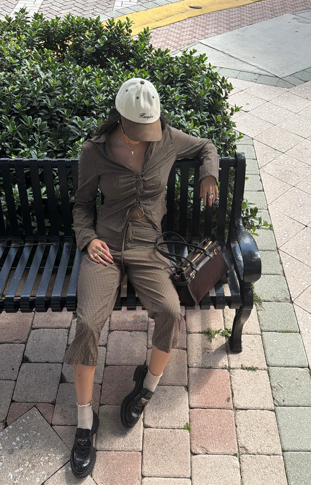 Step into sleek sophistication with the City Edge Set. Designed in a tailored micro-check print, this two-piece brings a modern twist to classic tailoring. The lace-up front top adds a daring, feminine detail, while the cropped wide-leg pants keep the look effortlessly cool and versatile. Perfect for turning heads from daytime strolls to evening outings, this set is all about chic confidence with an urban flair.