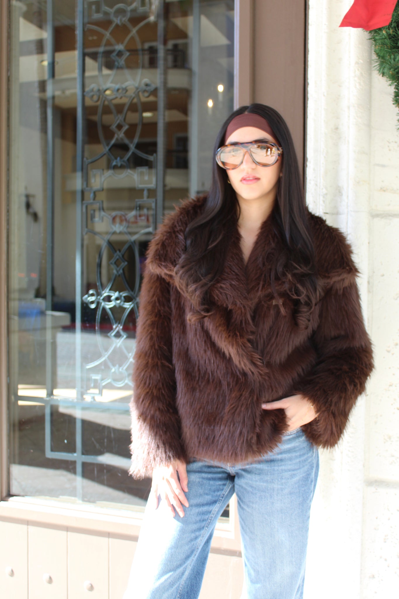 Wrap yourself in effortless glamour with The Après Chic Coat Designed in a rich chocolate-brown hue, this statement piece features ultra-soft faux fur with a plush shawl-style collar that elevates any look. The relaxed yet structured silhouette makes it perfect for day-to-night wear—whether styled with denim and boots or layered over an elegant dress. Cozy, chic, and undeniably luxe, this coat is your cold-weather essential for timeless sophistication. ✨🤎